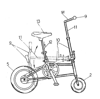 詢問過幾位車友對這台車都不太了解,可能是太過於冷門的車款,於是開始做了一些功課研究這台可愛的小徑車,後來查到了這台車在2000年的新型專利,主要的特點在於以騎乘的安全性與舒適性為前提下,盡量縮短了前後輪的距離,而小U把傾斜的向前用來讓騎乘者的手臂可以適當的伸展,使得騎乘姿勢更自然些,折疊後小U把轉個角度也可以和車身重疊後簡單地固定住。後來在朋友的收藏中也看到了同款車有前後車輪都是12吋的版本,配色也是少見的紫黃撞色搭配,十分顯眼且特別的配色,也很符合這台車明亮的形像。