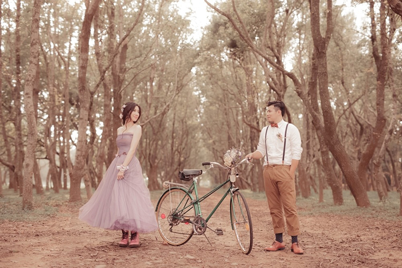 我覺得『mixte』不僅僅只是適合女性使用者騎乘的車款,應該是更有跨界感,同時適合男女、不分性別都適合騎乘的車種。專門女性騎乘也有更低跨點的設計喜歡這種具有獨特氣質的車架的使用者應該可以嘗試看看,不同的零組件搭配都可以創造出更多可能性,找到最適合自己騎乘的風格。後來這台腳踏車也有借給朋友當作婚紗拍攝的道具,在一片黃澄澄的落羽松林中,墨綠色的sprite真的像是精靈般充滿生動的靈性,就和大家分享這張照片作為介紹mixte的結尾。